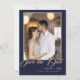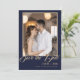 This elegant and modern gold and blue wedding save the date invitation features an elegant gold script on a blue background with your own photo. The text can be personalised by editing the text boxes. The colour on the reverse side of the invitation can be changed in the editor. Designed for you by Evco Studio © at www.zazzle.com/store/evcostudio #wedding #savethedate #invitation #invite #weddinginspiration #contemporary #simple #elegant #stylish #modern #design #popular #topsellers #topselling #custom #trending #winterwedding #springwedding #summerwedding #autumnwedding #engagement #stationery #personalised #personalised #destination #formal #classic #editable