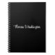 Simple modern black notebook with your monogram name in a bold stylish white script. If needed, adjust the size of the script font in the design tool editor for longer or shorter names.