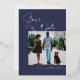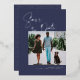 Stylish script lettering paired with clean modern typefaces in real silver foil frame your engagement photo on a navy blue background. Add your custom wording to this design by using the "Edit this design template" boxes on the right hand side of the item, or click the blue "Customise it" button to arrange the text, change the fonts and colours and to also add additional information or images to this design. Click "Customise Further" to open full editing options. If you need any coordinating items, (thank you cards, etc.) please contact me for a custom order. ****For custom requests you need my help with, do not place this merchandise in your cart. Instead, email me your request at lauralise@iyhtvdesigns.com A link to your merchandise will be emailed to you once the item is available. You can use that link to place your order. Please allow up to 48 hours.