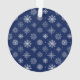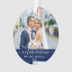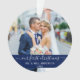 Elegant Stylish Trendy Script Our First Christmas Wedding Photo Blue Ornament with Snowflakes back