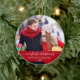 Elegant Stylish Trendy Script Our First Christmas Couple Photo Red Ornament with Snowflakes back