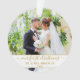 Elegant Stylish Trendy Script Our First Christmas Wedding Photo Gold and White Ornament