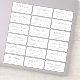 Customisable modern and chic black and white address label stickers for your wedding guest correspondence. Names are written in a  stylish script and addresses in classic serif typography. Each sheet contains 18 stickers -- when finished with one, place it in your cart and start a new sheet the next 18 guests. If a particular name or address is unusually large or small. you can adjust the font size up or down for that label by selecting to edit in the design tool.