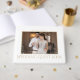 This elegant and modern gold and white wedding guest book features an elegant gold script on a white background with your own photo. You can add your names on the front and an additional photo on the back with the wedding date and location. The text can be personalised by editing the text boxes. Designed for you by Evco Studio © at www.zazzle.com/store/evcostudio #wedding #guestbook #weddinginspiration #contemporary #simple #elegant #stylish #modern #design #popular #topsellers #topselling #custom #trending #winterwedding #springwedding #summerwedding #autumnwedding #stationery #personalised #personalised #destination #formal #classic #editable #chic #photo #photograph #white #gold