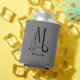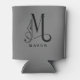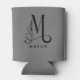 Stylish Scroll Letter M Monogram with Last Name Can Cooler