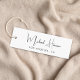Chic custom clothing, accessories, jewellery, boutique, etc., white label hang tag featuring your name or brand showcased in a stylish signature script. Add additional text below and on the back in clean simple lettering.