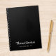 Modern black notebook for your personal or professional business use featuring your monogram name or brand showcased in a stylish white signature script. Add additional text below in simple white lettering.