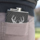 A modern Deer Head bold Energy Spirit applique style. A white tail antlers buck trophy profile on a carbon fibre look background that is sure to make an impression on or off the trails. We also carry a wide selection of custom embroidered caps to complete your quest for that something special.