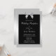 Stylish Silver Gem Bow & Black Wedding Reception Invitation
