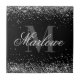 Stylish Silver Glitter Black White Monogram Ceramic Tile