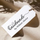 The lovely script design stamp saying " handmade" with personalised text details. Perfect handmade business stamp for your handmade items to label easily with this self inking rubber stamp..