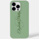 This phone case design features a solid green background with darker green script name and pastel initial letter monogram. Personalise the text fields, remove any text or use the dit design tool to select a font style, size, and colour you like. It can make a nice personalised gift for a special occasion or for a new phone.