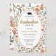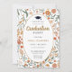 A fresh stylish spring wildflowers graduation party invitation in bold colours of orange, and pink with green leaves. If you want to change the font style, colour or text placement, simply click the "Customise Further" button and use the simple design tool. Available in print, as a digital download, or both.