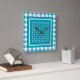 A stylish, square Wall Clock, with a teal and white check gingham pattern.