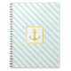 Stylish Striped Design Golden Anchor Notebook