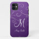 Stylish Swirl Custom Monogram Purple Case-Mate iPhone Case