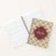 A stylish tan Moroccan quatrefoil pattern standard size notebook with a burgundy coloured badge you can personalise by adding your name and monogram initial to. This is part of the Warm Sand and Spiced Apple Spring Quatrefoil Collection.