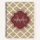 Stylish Tan Quatrefoil Burgundy Monogram and Name Notebook