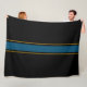 Stylish Teal Blue Brown Racing Stripes On Black Fleece Blanket