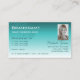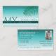 Stylish Teal Gradient Palm Leaf Monogram and Photo Business Card