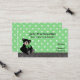 Stylish mummy card done in a light green and white polka dot pattern, with a black and white polka dots band, across the bottom front. Graphics of a cute black teddy bear, with a big green bow, decorates the bottom front. Personalise all the text to suit your needs. Great for arranging play dates, parties, and baby sitting, with other moms.