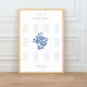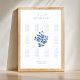 This ten table horizontal seating chart sets a welcoming, elegant and celebratory tone for arriving guests. Elegant and chic floral watercolor illustration with text in dusty blue against a white background. Personalise this seating chart to make it your own.