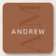 This stylish terracotta brown coaster features a modern layout with vertical monogram in big type, and your name in simple prominent horizontal type.