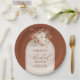 Add a touch of elegance to your celebration with these boho bridal shower paper plates, featuring watercolor terracotta florals, pampas grass, and a chic boho arch. The warm earthy tones of terracotta, copper, burnt orange, rust, dusty orange, and soft neutrals create a stylish and modern design that’s perfect for a trending boho chic bridal shower theme.