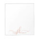 Personalised modern notepad with stylish, fancy calligraphy script typography initials or monogram and name in your choice of colours (shown in shades of terracotta). CHANGES: The text font style, colour, size and placement can be changed in EDIT to create your own unique, custom style. ASSISTANCE: For help with design modification or personalisation, colour change, resizing, transferring the design to another product or if you would like coordinating items, contact the designer BEFORE ordering via Zazzle Chat or email makeitaboutyoustore@gmail.com.