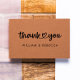 Designed with a flowing modern script where the words “thank you” are beautifully connected by a small heart, it adds warmth and charm to every impression. Your custom names appear just below in clean, contemporary typography, creating a balanced look that feels personal yet professional. Perfect for weddings, events, or small business packaging, this stamp turns every message into a thoughtful, elegant expression of appreciation.