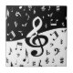 A stylish and eye-catching pattern of random musical notes in black and white with a large treble clef in the centre. The bottom of the design features black music notes on a white background with the top featuring white music notes on a black background. The large clef changes from black to white in colour half way.