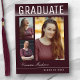 Stylish, trendy and modern graduation announcement postcards, featuring design elements of modern text with handwriting signature script. Three graduate photos highlight the front of the card with "Graduate" accented in a sleek white gradient. The back of the card offers personalised text spaces for information about your graduation and future journey. White writing on burgundy red or easily customise the background to match your school's primary colour or any colour of your choice. Perfect for the high school, college and university grad.