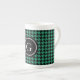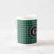 Stylish trendy green houndstooth with monogram bone china mug