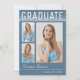 Trendy, modern and stylish graduation announcement cards, featuring design elements of modern text with handwriting signature script. Three graduate photos highlight the front of the card with "Graduate" accented in a sleek white gradient. The back of the card offers personalised text spaces for information about your graduation and future journey. White writing on chic dusty blue or easily customise the background to match your school's primary colour or any colour of your choice. Perfect for the high school, college and university grad.