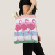 Stylish summer tropical tote bag designed with a pretty pink flamingo and tropical coloured all over stripes pattern in the background. Designed as a beach theme tote you can use to carry anything.