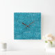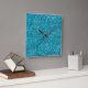Stylish Turquoise Blue Glitter Square Wall Clock