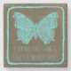 Stylish Tiffany Blue Wood Butterfly Quote 4” x 4” Custom Coaster.