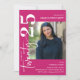 Celebrate in style with this minimal calligraphy script photo Graduation Party Invitation. Design features a hot pink background, that can be changed to any colour, a picture of the grad, the text 'twenty25 in calligraphy script and a modern party template that is easy to customise using the template provided. The reverse is decorated with mortar boards.