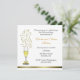 Elegant Wedding Anniversary Party Invitation, done with a white recycled card stock black text and gold accents. A champagne glass, with a sweet gold bow on the stem, has sparkling stars coming from the top of the glass, and a gold tone stripe at the bottom finishes off this elegant invitation ready for you to personalise for your party. If you prefer to delete the text for the RSVP you may do so. Matching RSVP response cards are available.