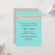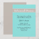 Streamlined and stylish this wedding rehearsal dinner invitation is done in a aqua blue colour, on the front, with a taupe stripe at the top and covering the back of the invitation. White text, across the taupe band, reads Rehearsal Dinner. All text is ready to personalise for your event.