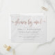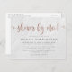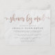 Long distance event? Celebrate the mum or bride-to-be with these shower by mail postcard invitations. Featuring a white marble background. The words "Shower By Mail" appear at the top in a faux rose gold foil calligraphy with sweet swirls. Your shower details are displayed with a modern typography. Click on "Personalise this template" and start adding your own details!