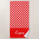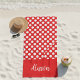 I am absolutely thrilled to introduce the stylish white polka dots pattern on this custom-name on red beach towel! It's the perfect accessory for any beach day, adding a fun and playful touch to your summer style. The vibrant red polka dots are effortlessly eye-catching and exude a sense of energy and excitement. Not only does it make you stand out from the crowd, but the personalisation option with your name adds an extra level of uniqueness. Made with high-quality materials, this beach towel is not only aesthetically pleasing but also practical in its functionality. The soft and absorbent fabric ensures maximum comfort during your sunbathing sessions or refreshing dips in the ocean. So get ready to turn heads at the beach with this trendy and personalised beach towel, embracing all its delightful features with contagious excitement!