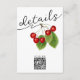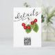 This chic double-sided enclosure card features a rustic design with vintage red cherries and green leaves on the front, set against a clean white background. The front also showcases sophisticated black calligraphy reading "Details." and a modern QR Code that allows guests to easily access your wedding website. On the reverse, the details are written in simple classical white script on a romantic red background. All text, including the scannable QR code, is fully customisable—replace it with your own or remove unnecessary information. Explore our Cherry Wedding collection for coordinating products that create a cohesive and stylish look for your event. Perfect for a personalised and memorable wedding experience!