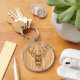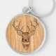 Stylish White Tail Deer Head Wood Grain Print Key Ring