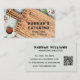 Stylish Wood Cutting Board Cooking Rustic Script Catering Charcuterie Party Business Cards features a rustic brown wooden kitchen cutting board with an overlay of your name, company, type of business, designation or additional information on the front accented with herbs and spices. On the reverse is your personalised contact details, social media details and custom QR Code. Perfect for a wide variety of business marketing from small business charcuterie to chefs, cooking classes and more. Personalise by editing the text in the text boxes provided. Designed by ©Evco Studio www.zazzle.com/store/evcostudio