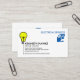 A minimalist design. A white cover is accentuated by a yellow electrician's bulb at the left face of the card. The switch at the bottom houses the card's detail. Over at the top are your prestigious name and job title alongside the contact details and slogan tagline near the base. Northwards to the top is your second slogan option with a logo that you can use.