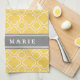Stylish Yellow Quatrefoil Pattern with Name Tea Towel