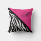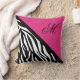 Stylish Zebra Print and Pink Monogram Throw Pillow