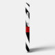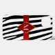 Chic wild animal pattern iPhone case with a black and white striped zebra pattern. Pretty graphics of a red satin ribbon and a red triangle monogram plate decorates the middle of the case. Personalise the white one letter monogram to this great looking case. The perfect way to protect your phone, and look stylish too.