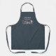 The icons and text contrast beautifully against the navy backdrop, ensuring visibility and readability without overpowering the apron's sleek design. The tool illustrations are rendered in a minimalist style, achieving an aesthetic that is both modern and timeless.